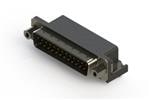 629 SERIES RIGHT ANGLE D-SUB PLUG CONNECTOR WITH 25 PIN TYPE CONTACTS THAT HAVE GOLD FLASH PLATING. THE CONNECTOR HAS A .409" FOOTPRINT WITH POWER CONTACT, THE INSULATOR IS STANDARD. THE SHELL IS GROUNDED VIA 3 PRONG BOARDLOCKS THAT