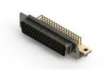 629M SERIES RIGHT ANGLE D-SUB PLUG CONNECTOR WITH 50 MACHINED PIN TYPE CONTACTS THAT HAVE GOLD FLASH PLATING WITH A .370" (9.40MM) FOOTPRINT AND P.C.B TAILS. THE INSULATOR IS WHITE AND THE SHELL IS TIN PLATED. IT IS MOUNTED VIA ?.120