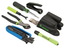 KIT PROFESSIONAL COAX TOOL 7PCS; Kit Contents:Cutting Pliers Cable Stripper Compression Tool Multi-tool Screwdriver Penlight Ratchet Pouch; Product Range:-
