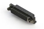 622 Series right angle D-Sub receptacle connector with 37 pin type contacts that have gold flash plating. The connector has a .318" footprint with ferrite filter, the insulator is standard. The board mounting features are 2 prong