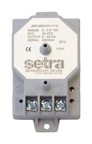 Pressure Transmitter, 0.25Inch-H2O/30Vdc; Pressure Type:Differential; Pressure Port Type:Dual Radial Barbed, Same Side; Operating Pressure Min:0Inch-H2O; Operating Pressure Max:0.1Inch-H2O; Pressure Port Size:3/16" |Gems Sensors 26410R1WD2DT1C
